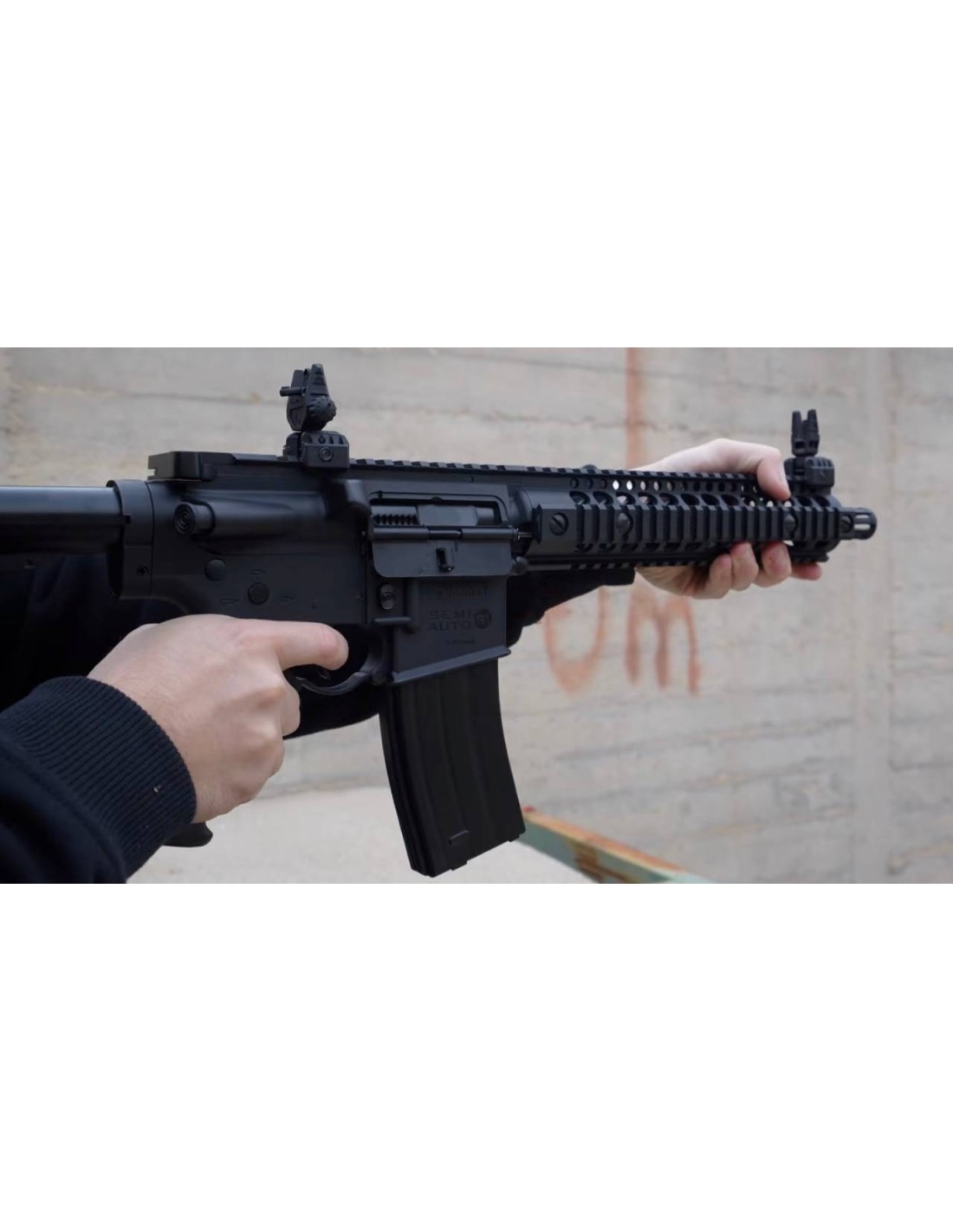 La Crosman R1 es una carabina de CO2 de estética AR, que destaca por la gran calidad de sus materiales y la gran capacidad de su cargador. Este modelo de carabina de CO2 puede disparar en modo semiautomático, y sin necesidad de recarga, hasta 25 BB's del calibre 4.5 mm.